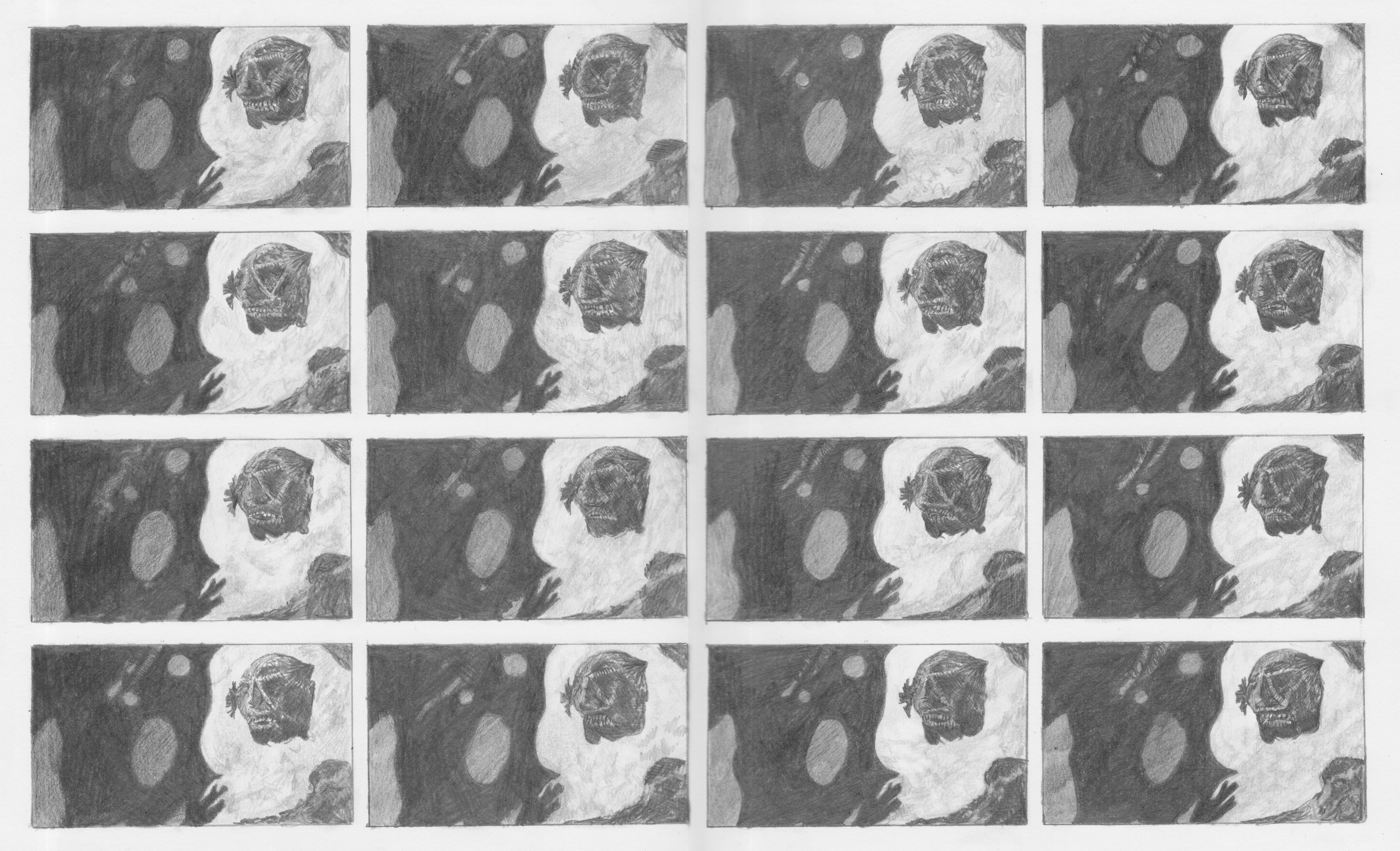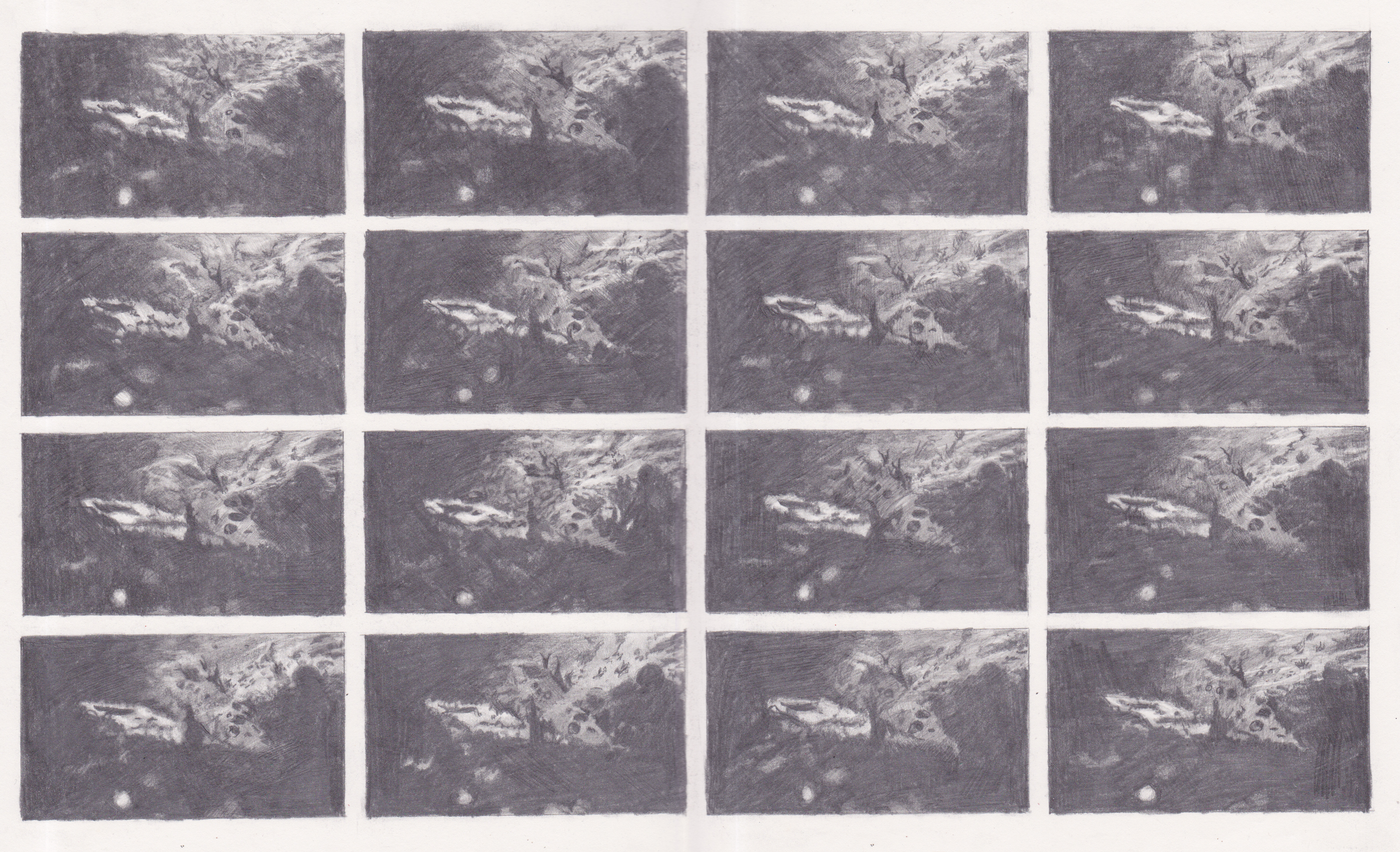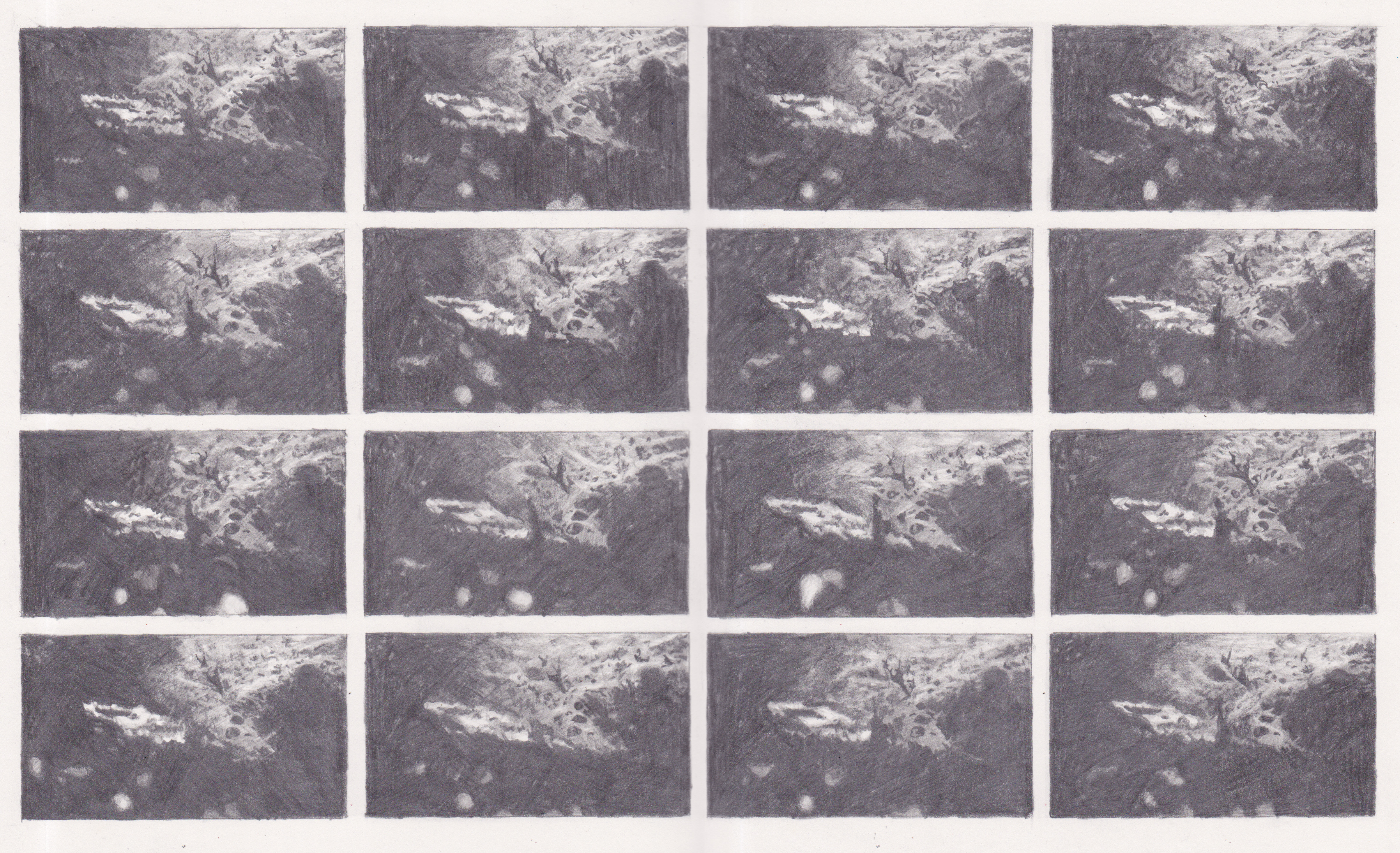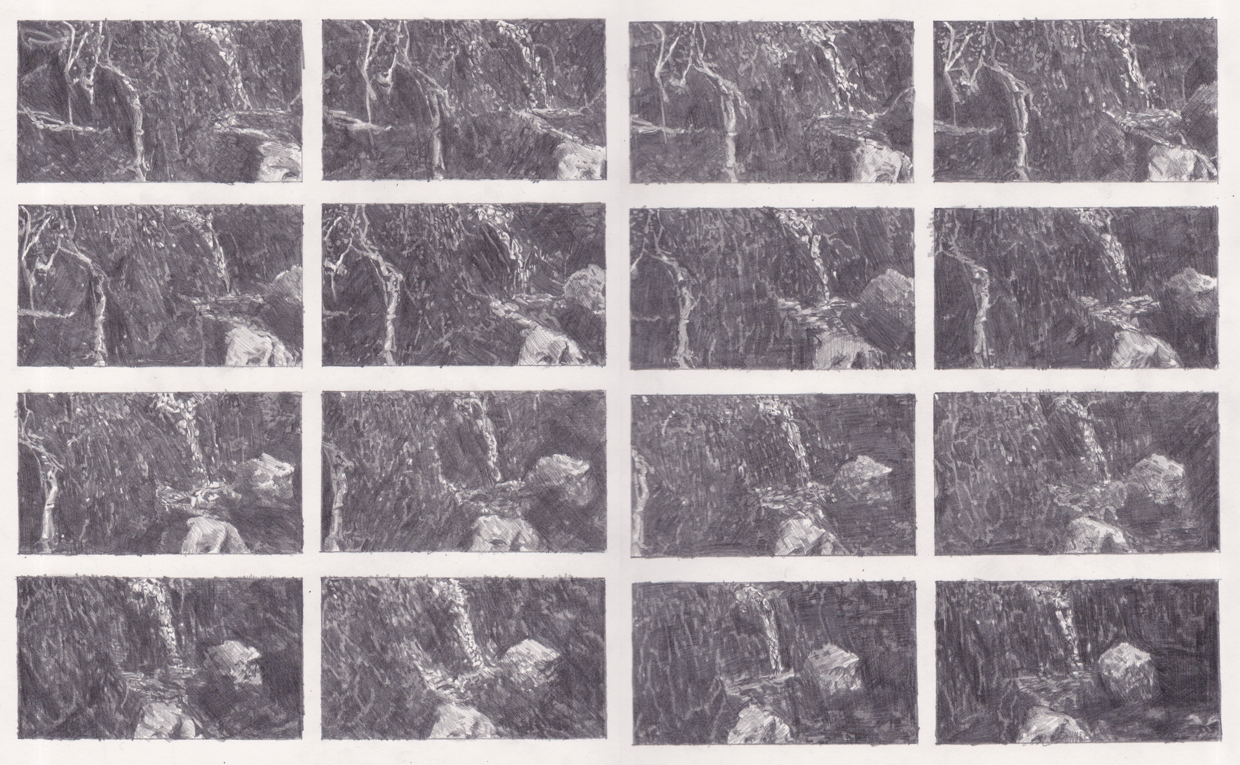 I began by recording footage of the undercliffs and rock pools along Axmouth beach (Devon, England) and collecting field recordings of the Jurassic coast path. I then selected the footage to be rotoscoped and, after cropping/altering the composition, printed out the frames onto A3 paper. Once the frames were drawn over, the finished drawings were scanned back onto my laptop and arranged into the final animation.