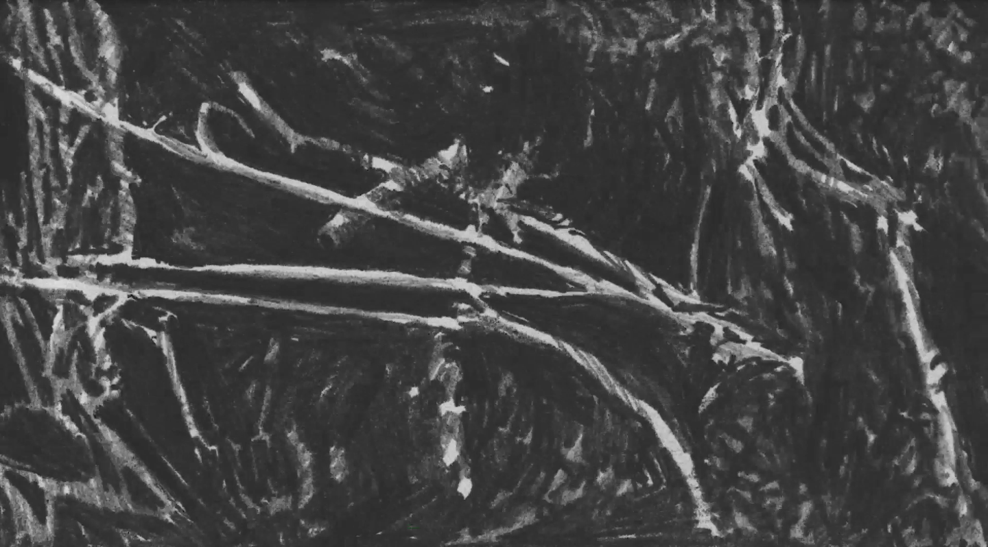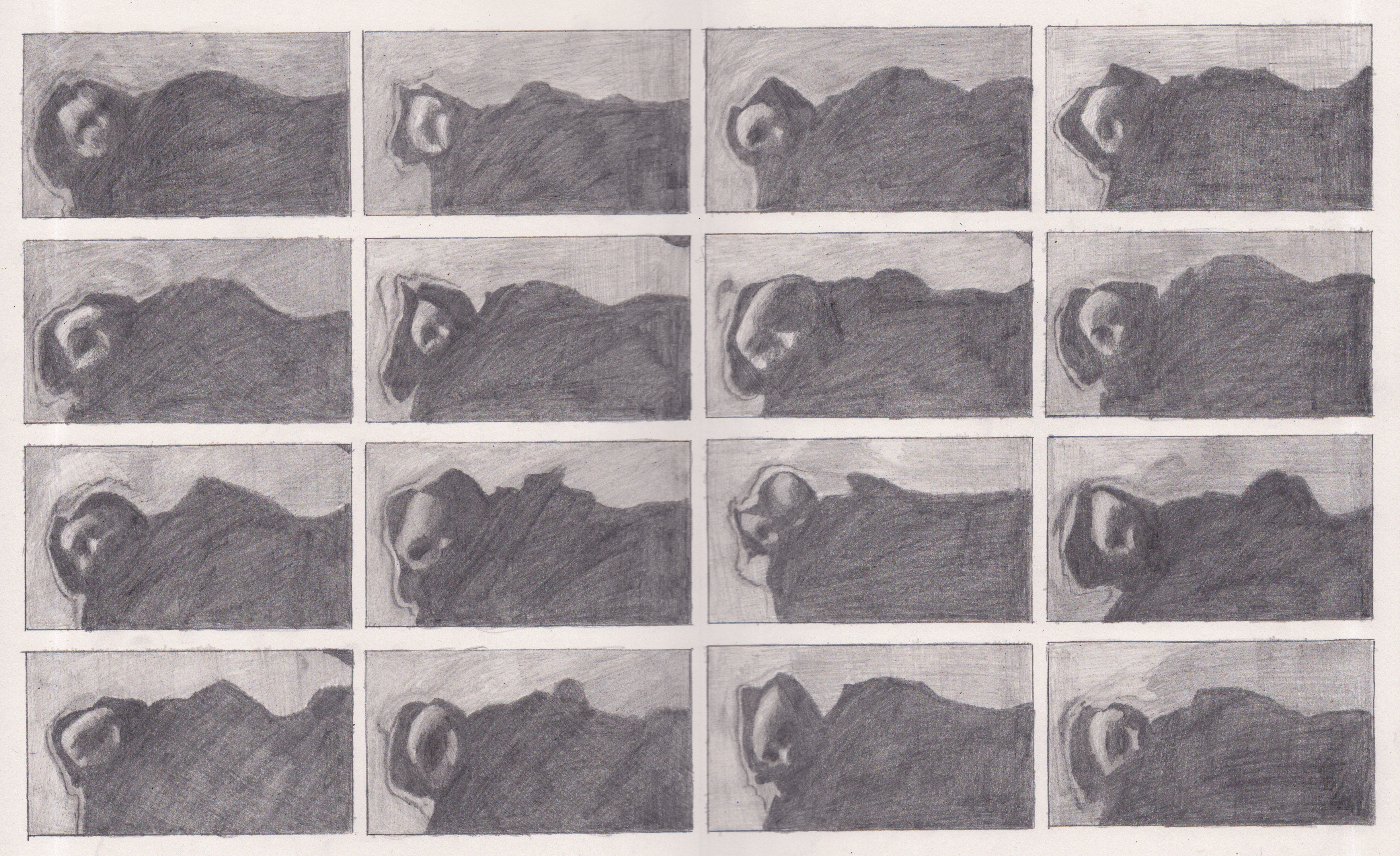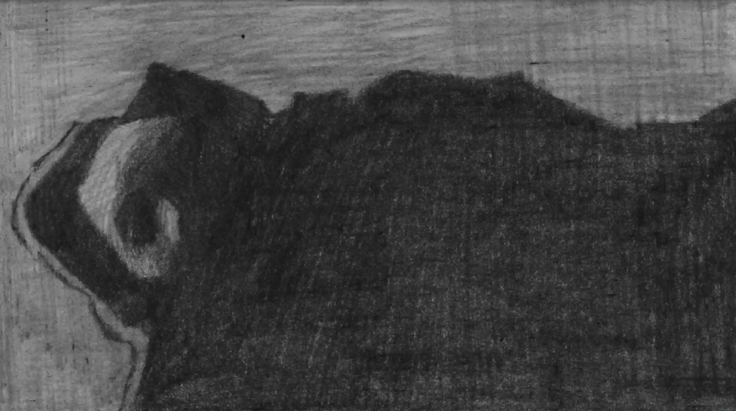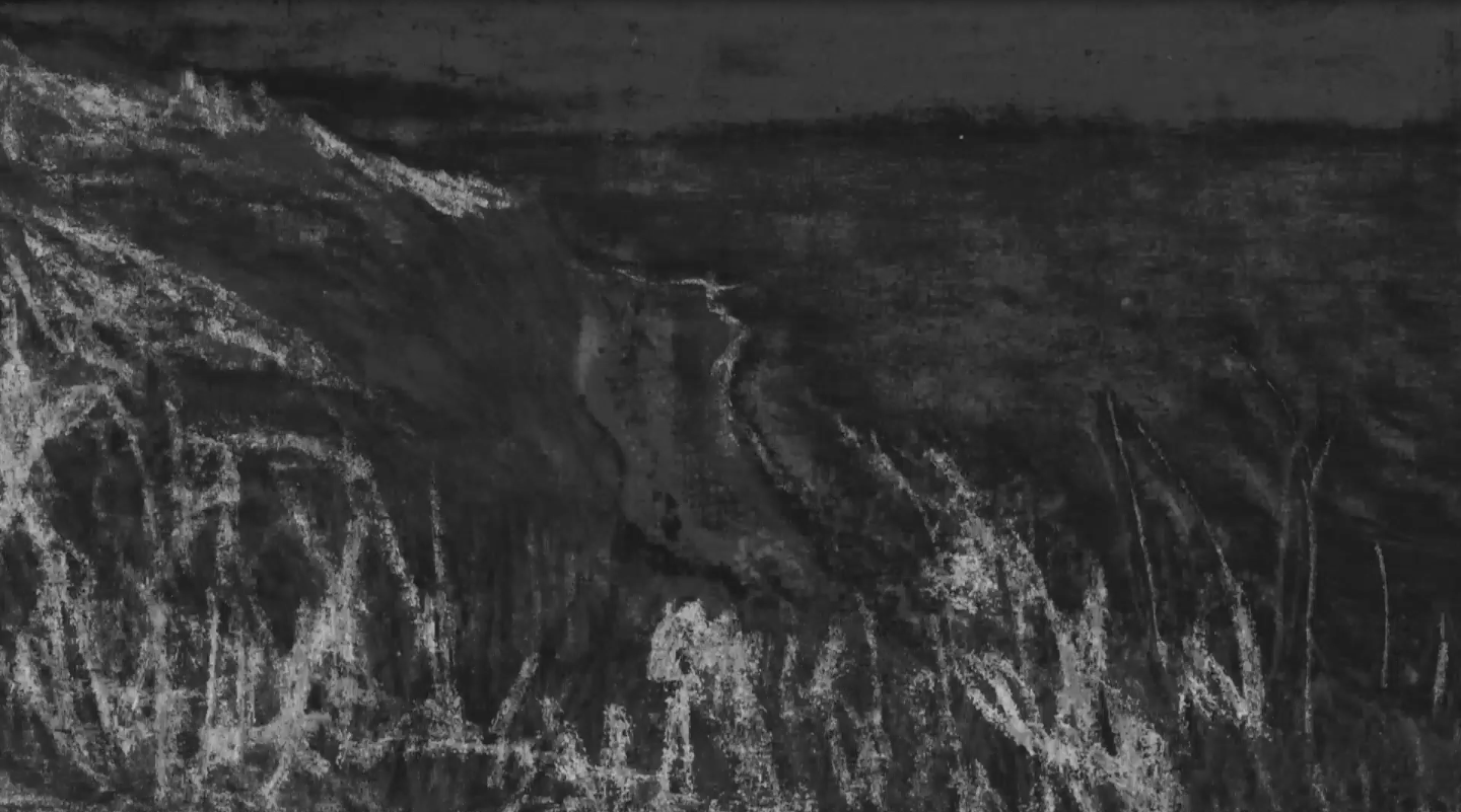 ‘Voicemail’ is a frame-by-frame animation drawn in graphite pencil/conte crayon and explores my memory of my father’s death in 2023. The audio combines his voice with field recordings from the South West coast path, which is where I was walking at the time I heard the news.